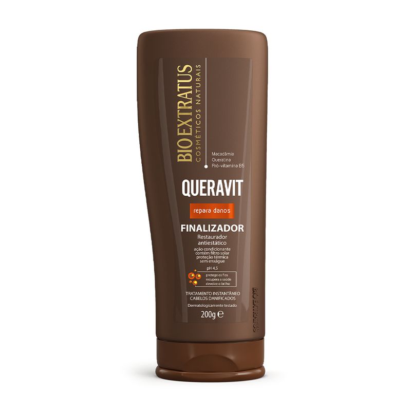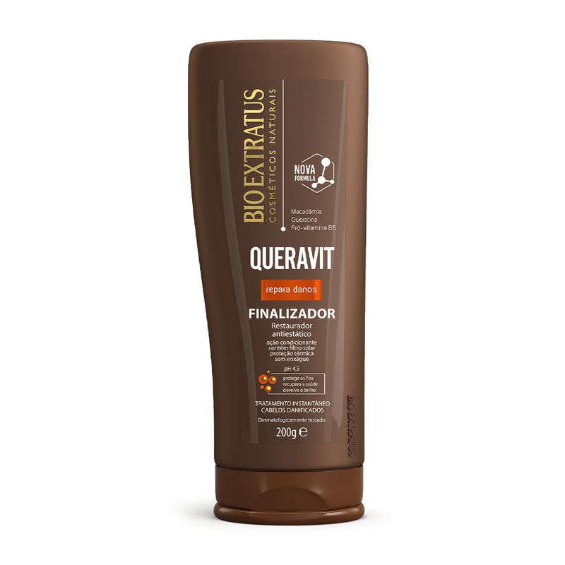 Indicado para o cuidado diário dos cabelos, o Finalizador Queravit restaura os fios danificados pelos efeitos nocivos do mar, vento, poluição ou agentes químicos. Sua fórmula original penetra instantaneamente nos fios, deixando-os macios, fáceis de pentear, muito mais resistentes e brilhantes. pH 4,5. Contém filtro solar. Sem enxágue.