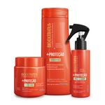 Praia, piscina, rua... os cabelos sempre encontram agentes agressores, em qualquer ambiente. Para evitar que os danos aconteçam, a linha +Proteção blinda os fios contra poluentes, tem ação quelante que desintoxica, eliminando metais pesados, ajuda a evitar e a retirar o esverdeado causado na piscina, protege do sol, do calor do secador, do desbotamento e do ressecamento. Um verdadeiro escudo protetor para os fios.